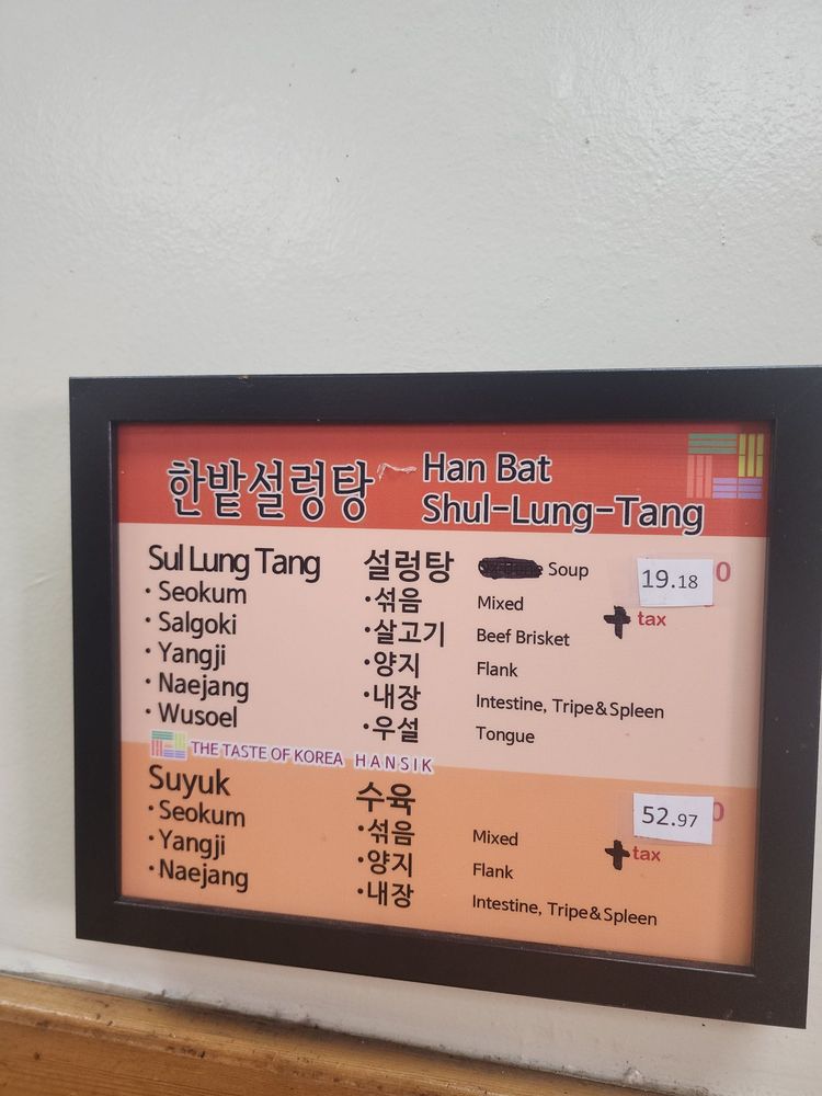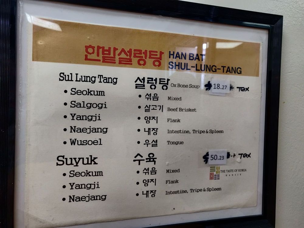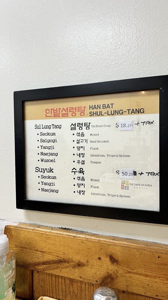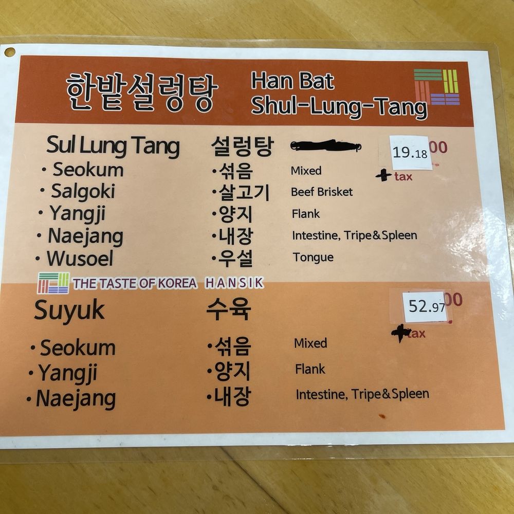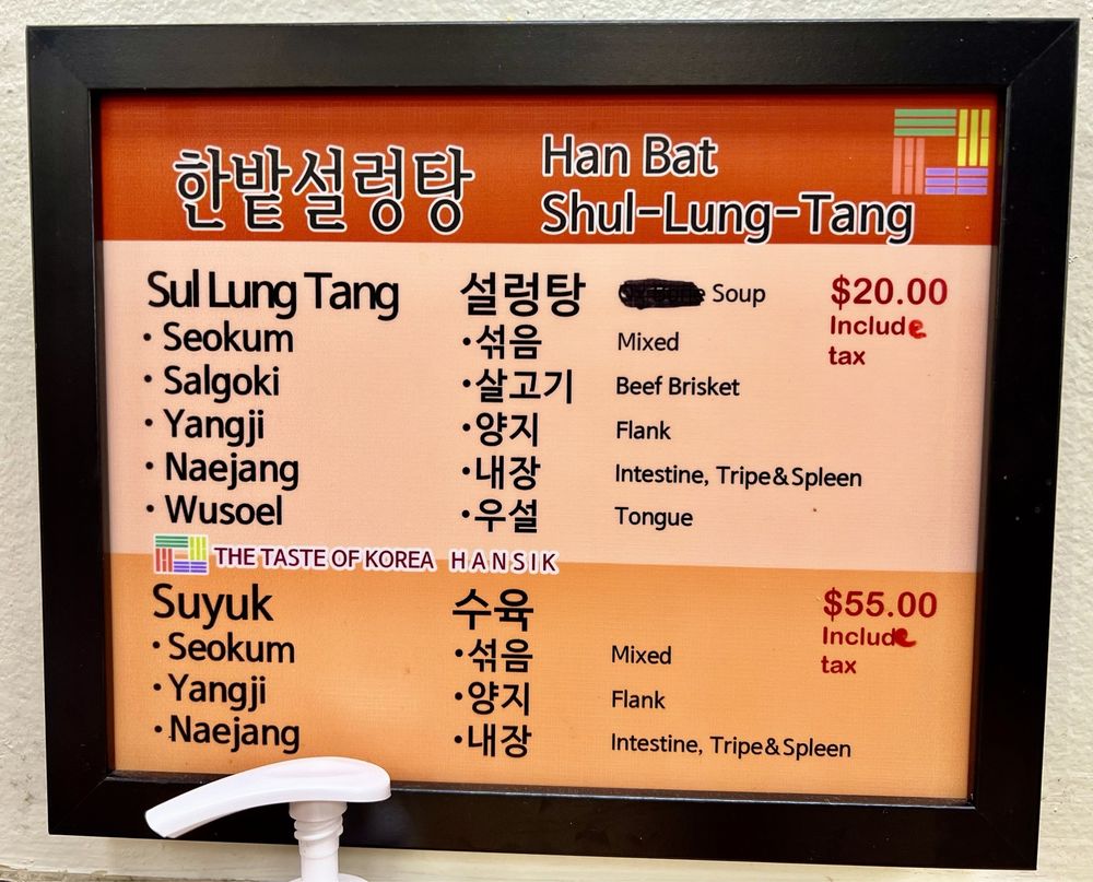Han Bat Sul Lung Tang Menu (2025 Update)