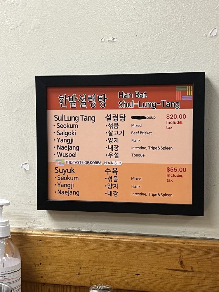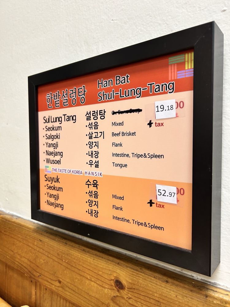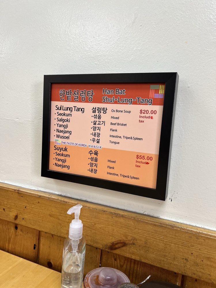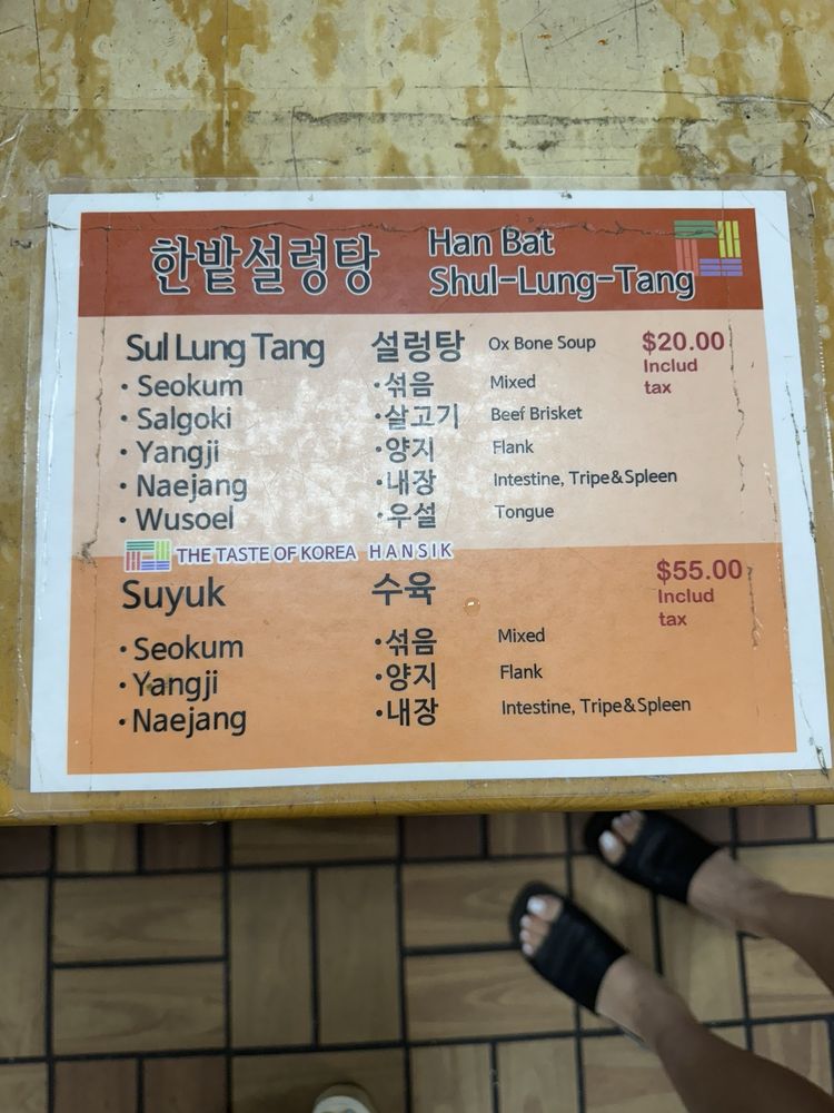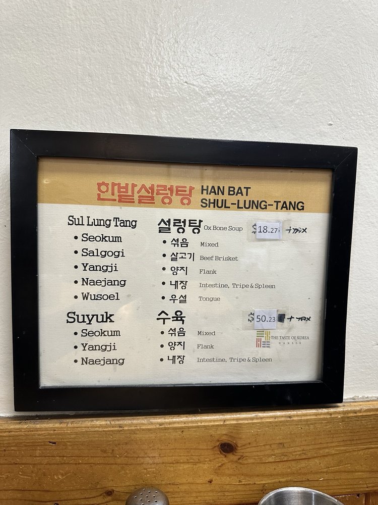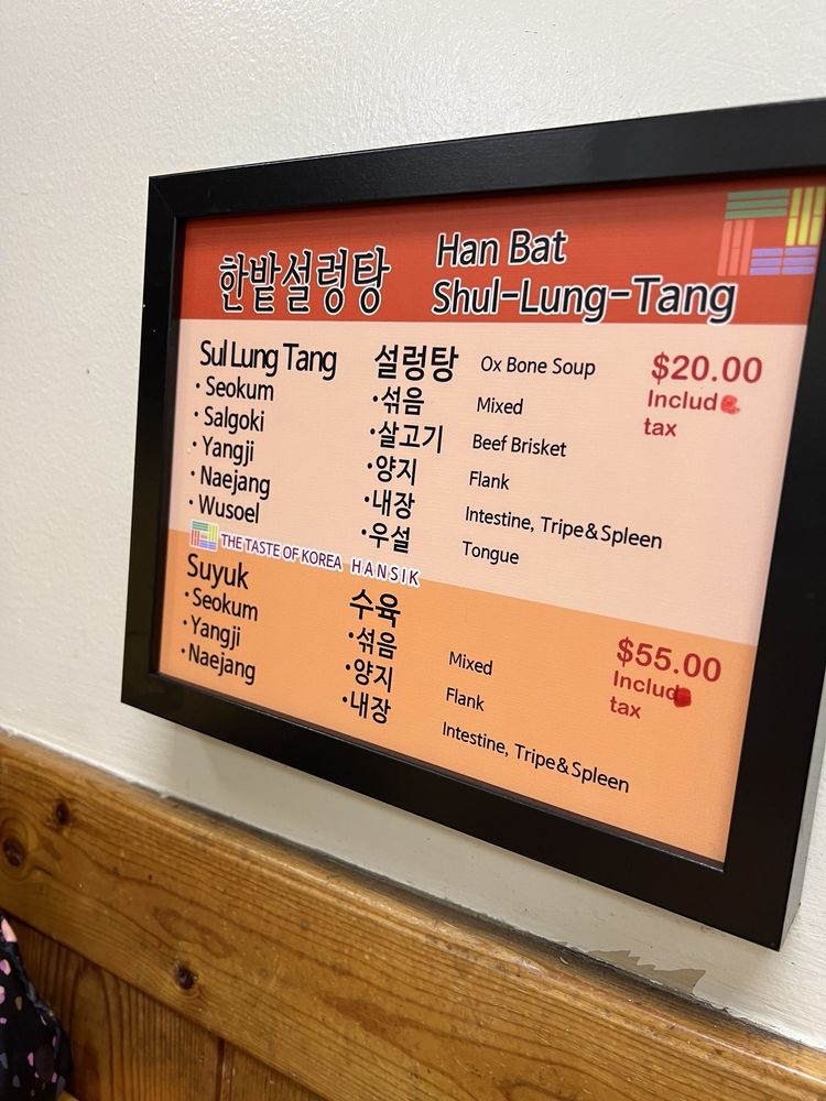 Han Bat Sul Lung Tang Menu (2025 Update)